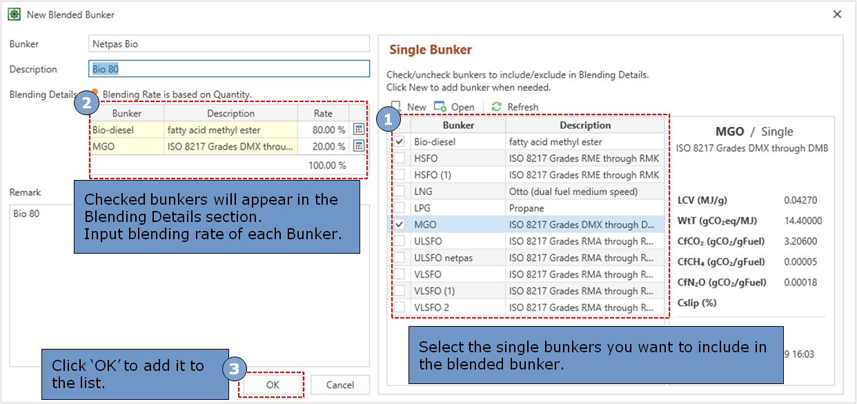 You can select two or more Single Bunkers to create your own Blended Bunker.