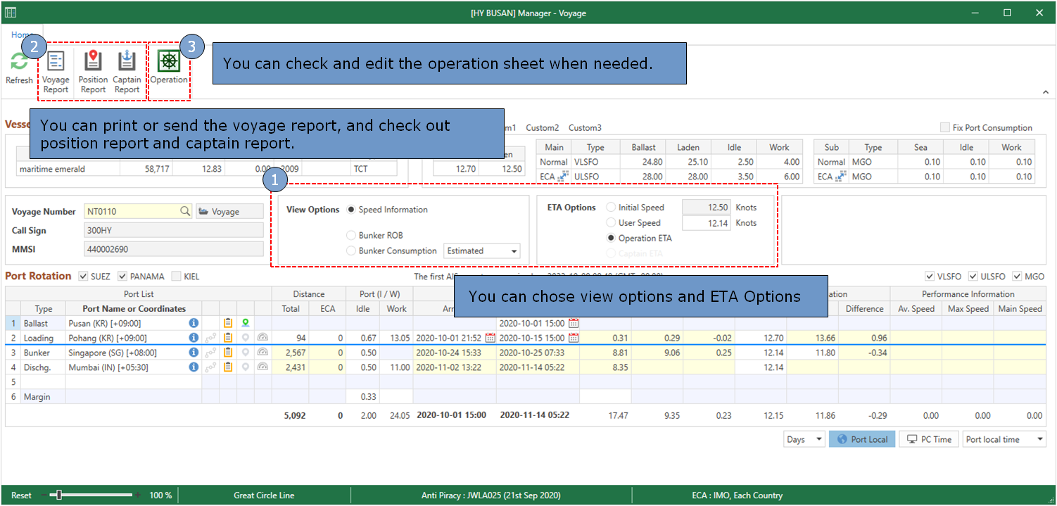 - Voyage Manager: Choose the vessel and click to open Voyage Manager