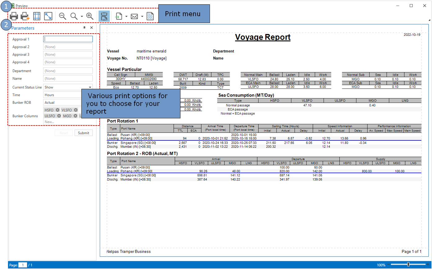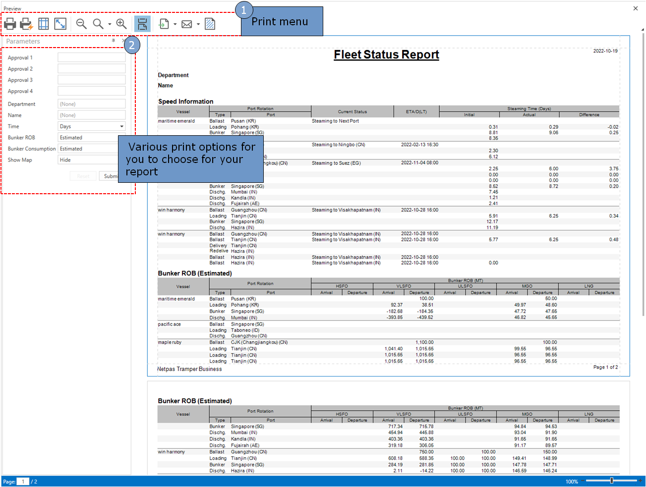 You can print, export and send it in Excel/Pdf file by email for each voyage with Voyage Report.