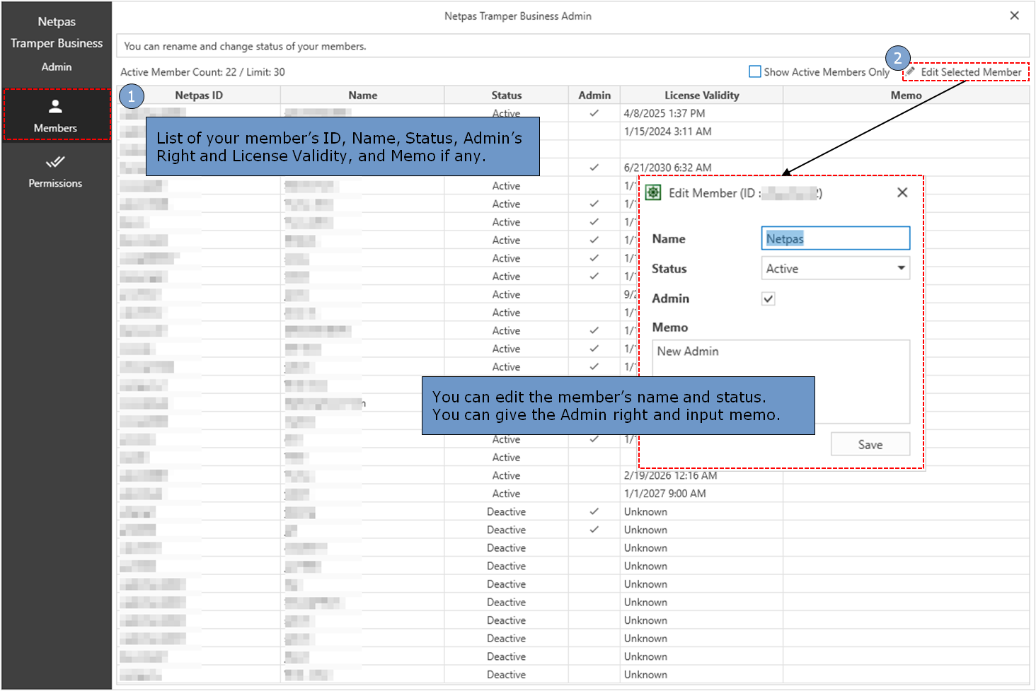 Netpas Tramper Business Admin can manage the users and give the Admin right to users.