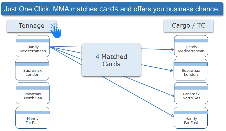 Just double click an offer card. It will then show you with matched tonnage and cargo cards for better business opportunities.