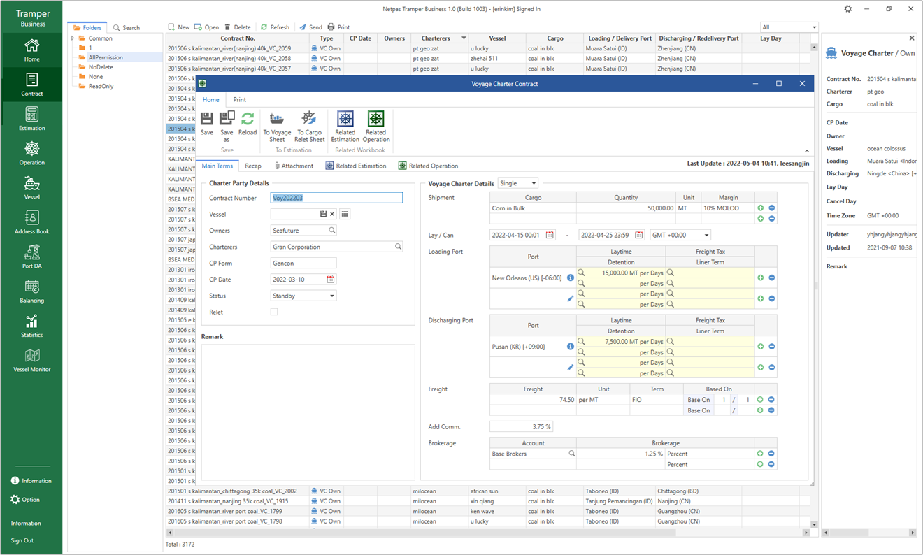 You can estimate the total profit and other important factors for your Voyage, Cargo Relet and Time Charter