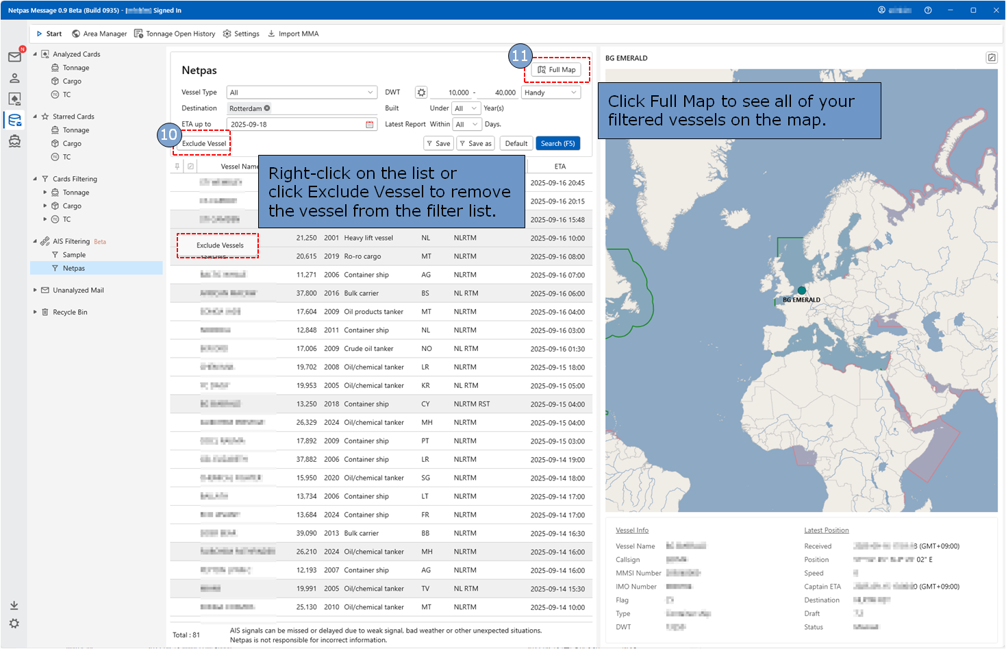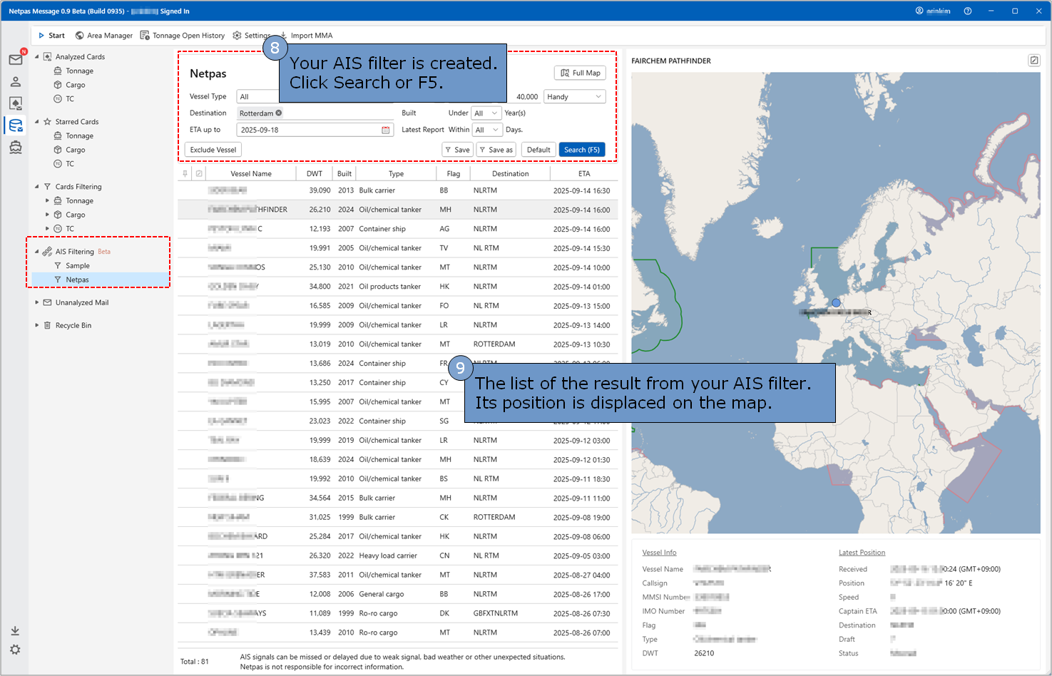 You can use AIS filtering to find vessels by location, date, size, and built year using real-time satellite AIS.